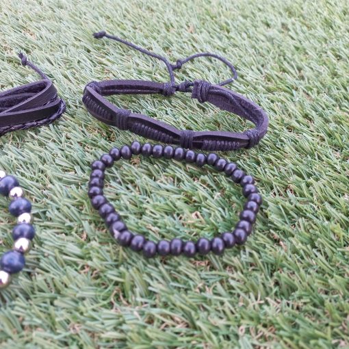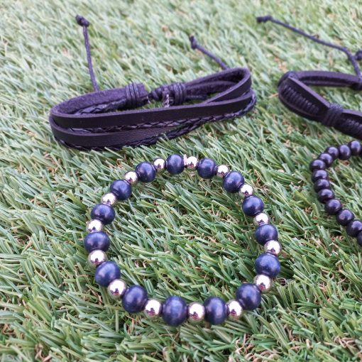 3 reviews for Black, Blue & Silver Leather Bracelet